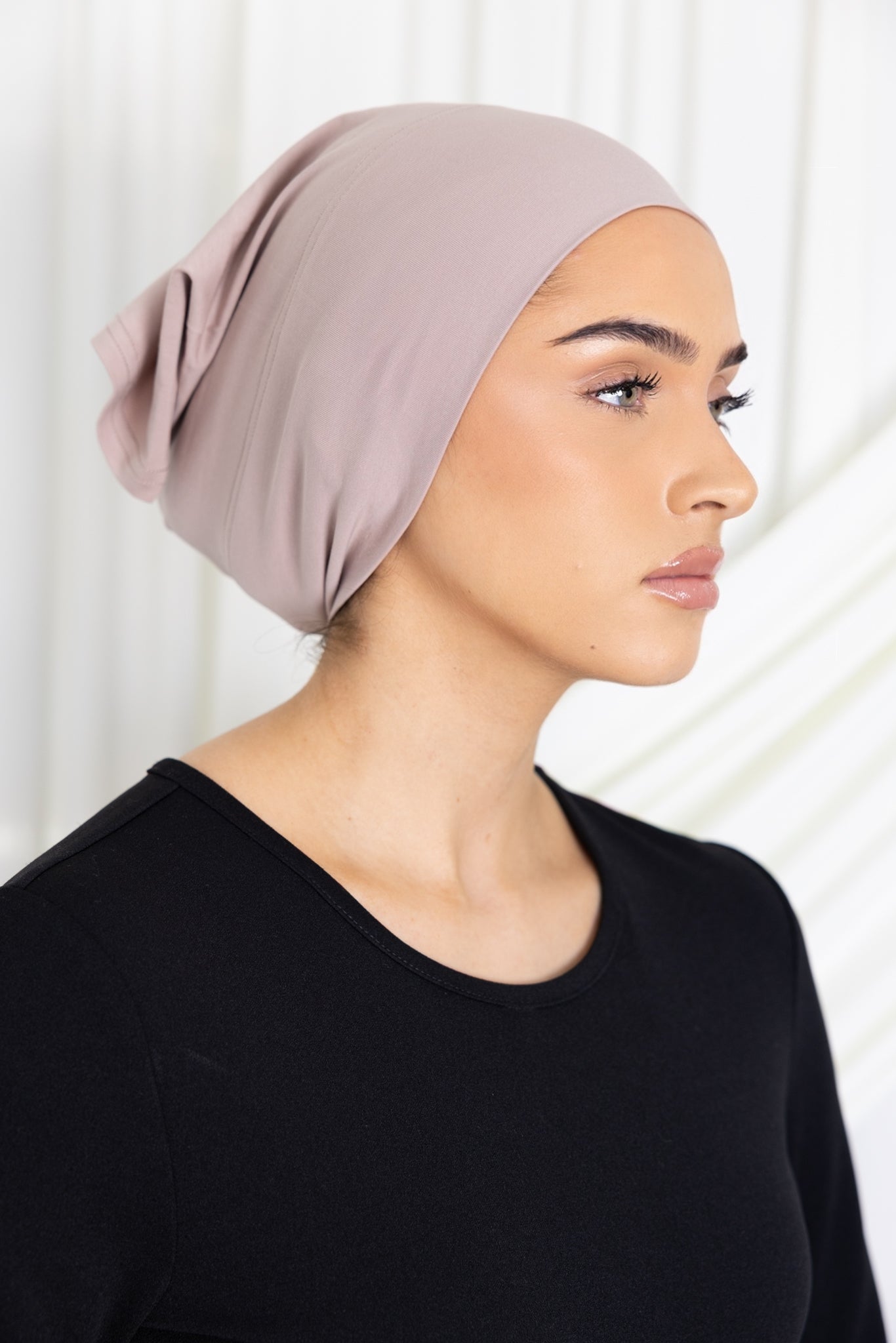 With its soft stretch and secure fit, the material stays comfortably in place with minimal slipping, making it the perfect base under any hijab.