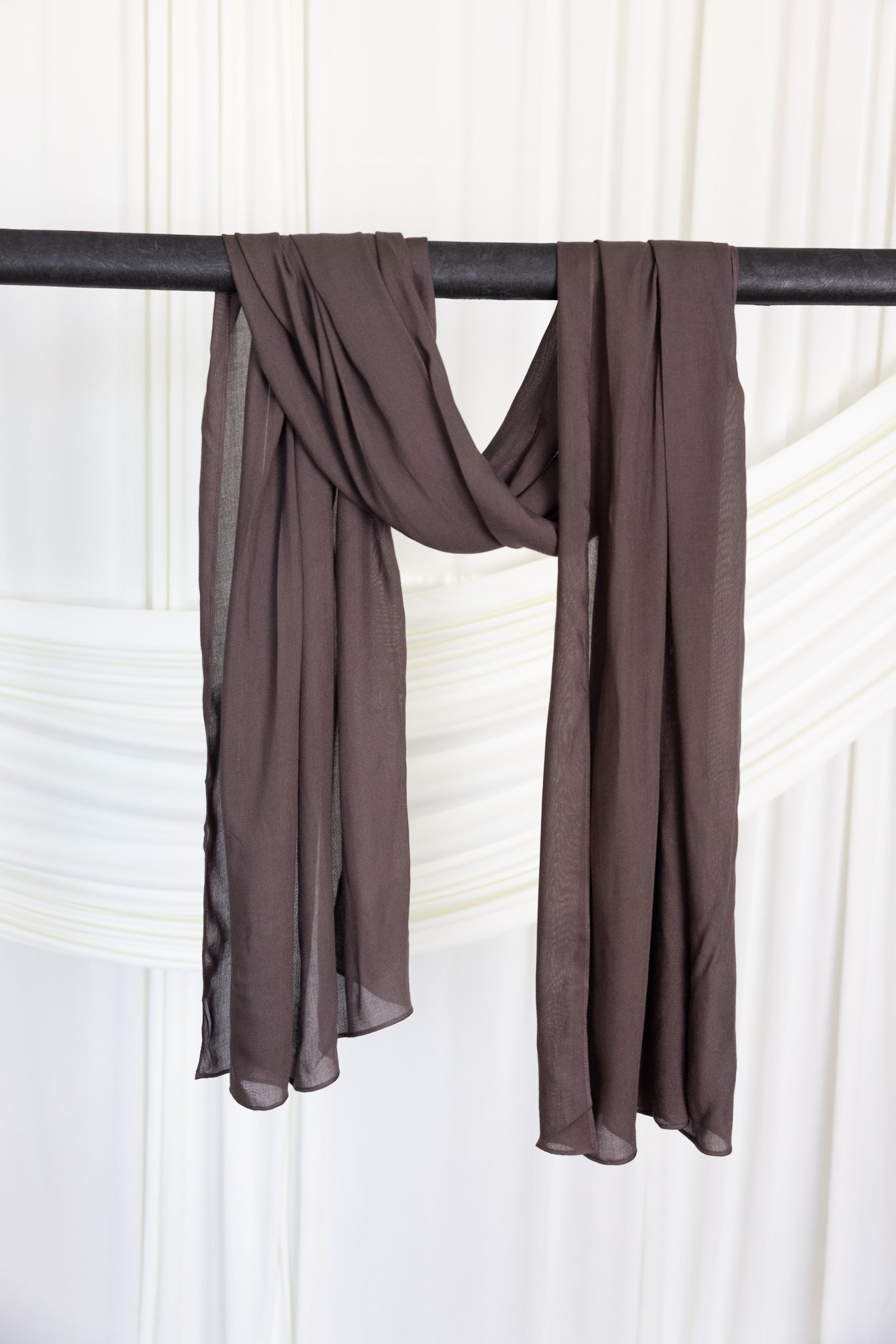 For a cool-toned classic, Iron is your match. A deep espresso brown, perfect for adding subtle depth to your outfits. ADINA scarves are opaque, custom dyed, with single stitch edging.
